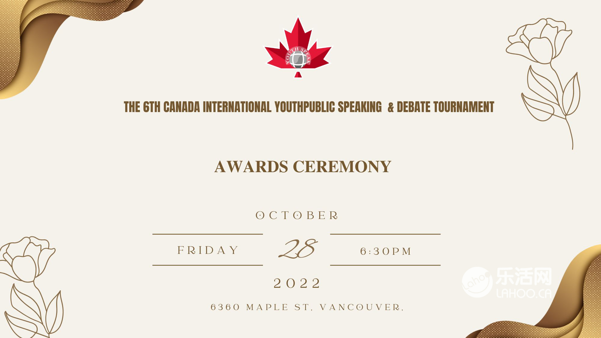 【加拿大乐活网Lahoo.ca Austin图文报道】2022年10月28日,由“汇理金融集团”及“龙美地产集团”共同赞助的“第六届加拿大国际青少年演讲辩论锦标赛”颁奖典礼在加拿大BC省温哥华Magee中学的礼堂成功举办。加拿大乐活网全程报道!