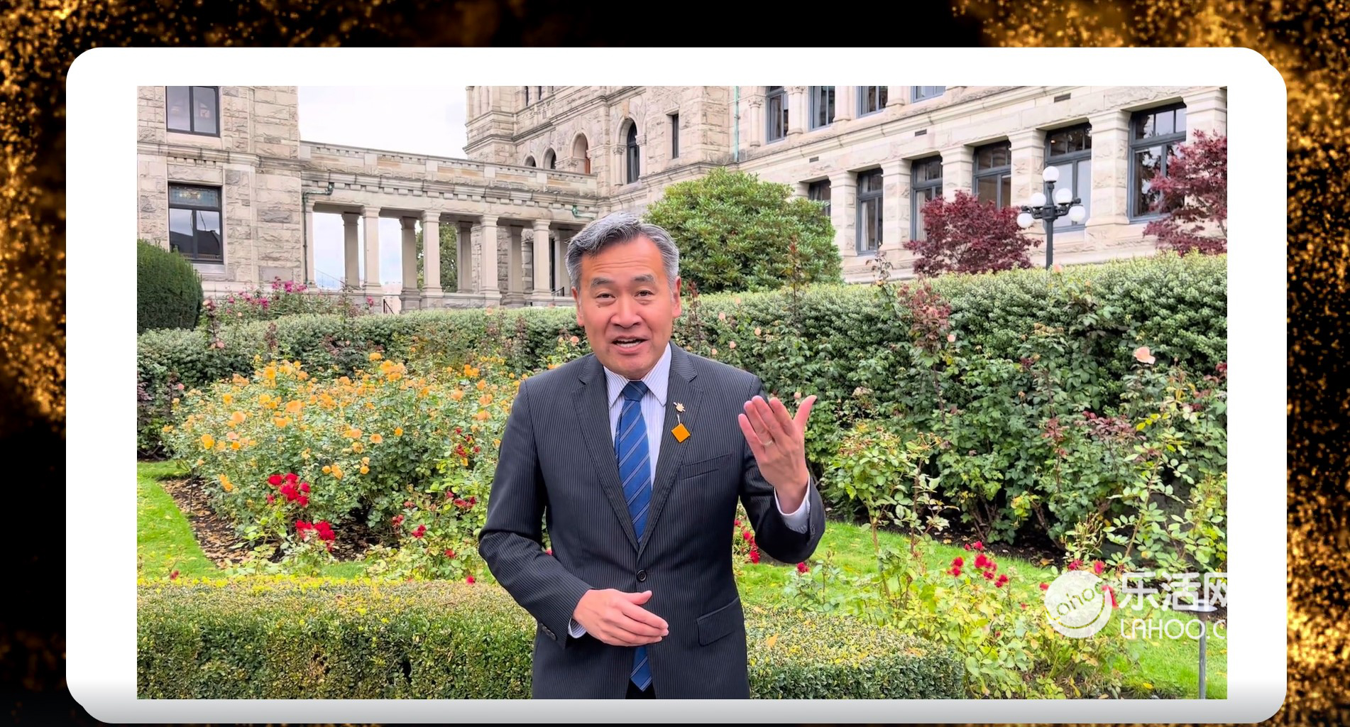 加拿大BC省议员 Michael Lee从BC省府维多利亚市送来视频祝贺!Michael非常赞赏加拿大青少年教育协会持续坚持、连续6年在加拿大举办这样的全球性青少年赛事,他认为在青少年阶段培养演讲能力和思辨能力,对未来的职业发展非常有帮助。Michael非常希望主办方继续努力,把赛事一届届办下去。
