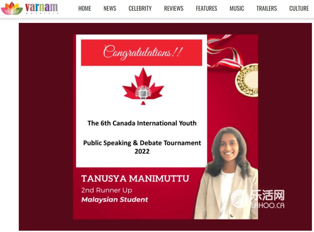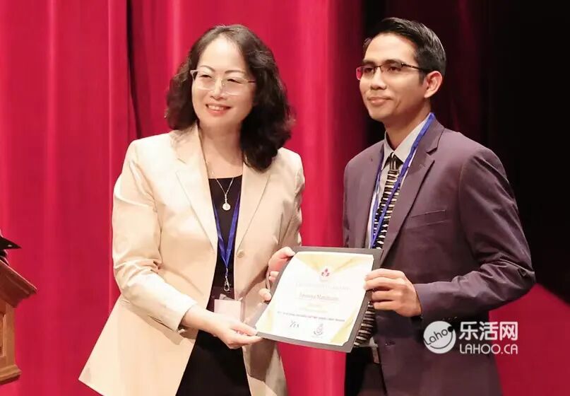 马来西亚驻温哥华领馆及时联系到了加拿大青少年教育协会,安排领事 Mr. Padli Ahamd到颁奖典礼现场, 从加拿大青少年教育协会创始人秦小梅博士手中,为马来西亚12岁少年Tanusya Manimuttu领取演讲少儿组第三名的证书和奖杯。