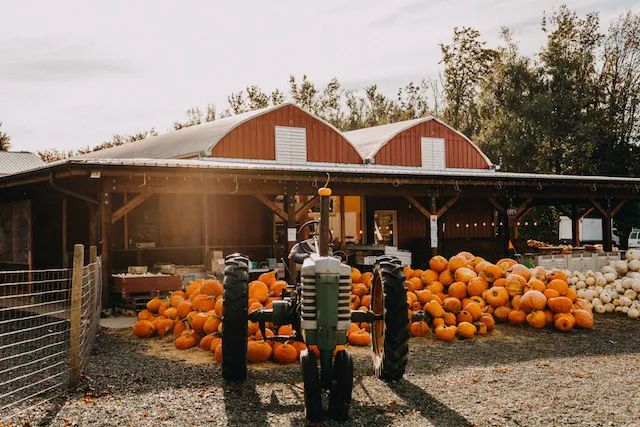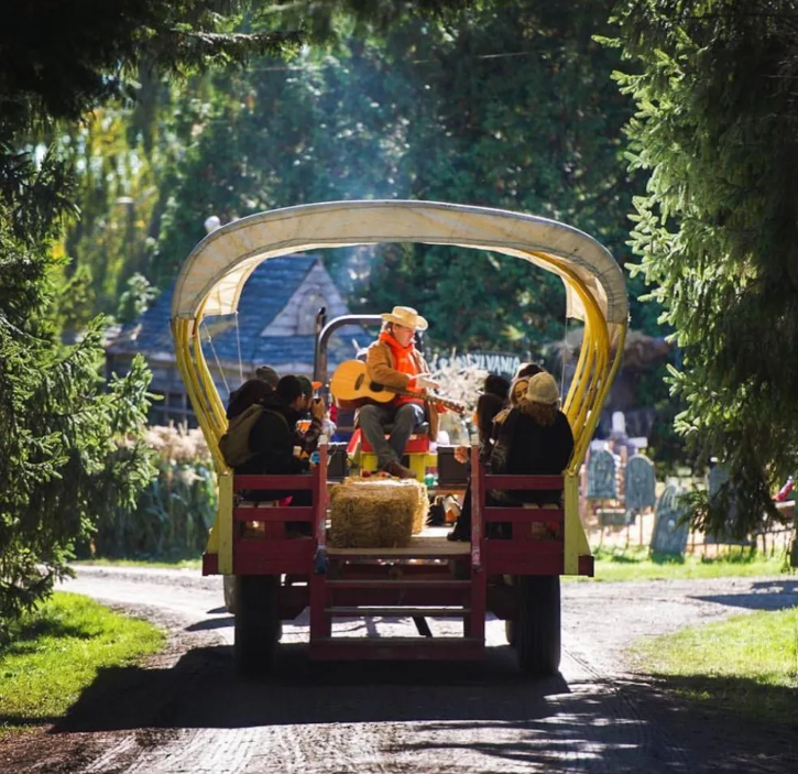大家可以坐在干草车上去南瓜田里挑选南瓜,周围还种满了玉米和向日葵;这里有一个常驻的农场乐队深受大家欢迎~