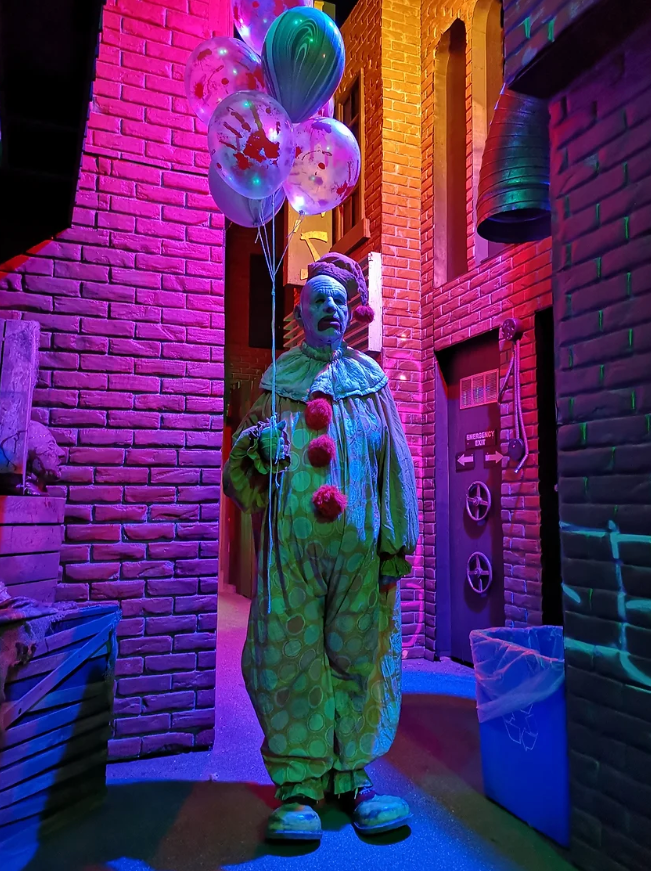充气鬼、滑稽人物和骷髅头的独特设计+恐怖电影的人物模型+真人演员扮演,让人血脉喷张,尖声狂叫!