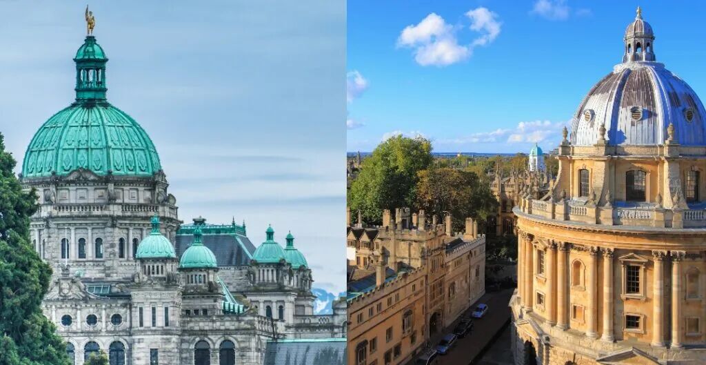 最后这一对镜像城市,是BC省府维多利亚和著名学府牛津大学所在的城市牛津。维多利亚因其英式花园、酒吧和建筑,一直被认为是加拿大西海岸最有英伦风格的城市。