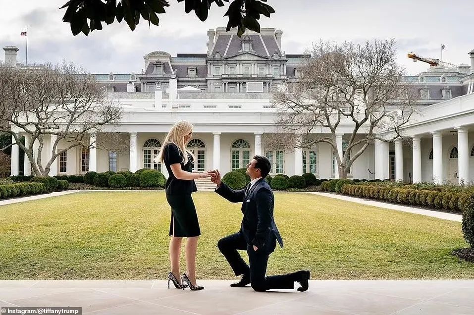 相恋四年后,在特朗普离任的前几天,Michael 带着120万美元的戒指在白宫的玫瑰园向Tiffany求婚,俩人终于修成正果。
