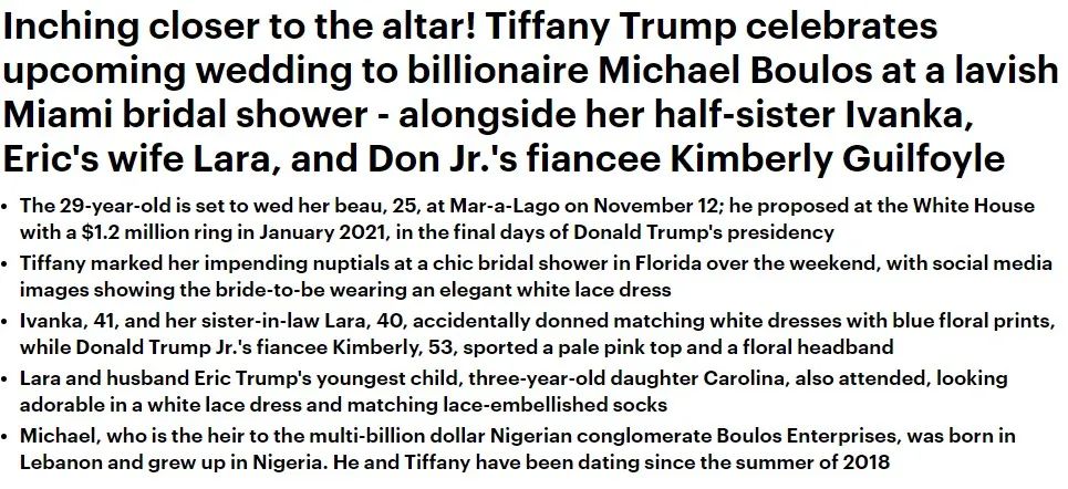 Dailymail这篇报道里,文章到最后竟然贴了好几张伊万卡的照片,嫂子Lara的照片都比Tiffany的多…