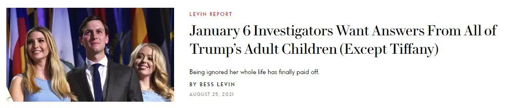 不过她也总算“走运”一回,国会山暴乱之后,特朗普家族几乎所有人都要接受调查,唯独Tiffany不用,媒体这标题,太损了。