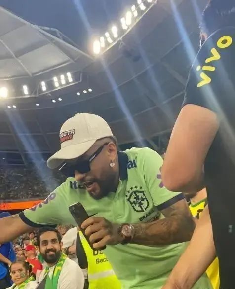 事情是这样的:当时,在比赛现场上有观众发现,在巴西球迷看台上惊现了内……马尔?