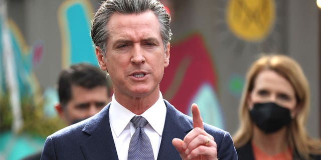 图中为2022年2月9日,民主党加州州长加文·纽瑟姆在法案签署仪式上发表讲话。图片来源于Dailymail,版权属于原作者。