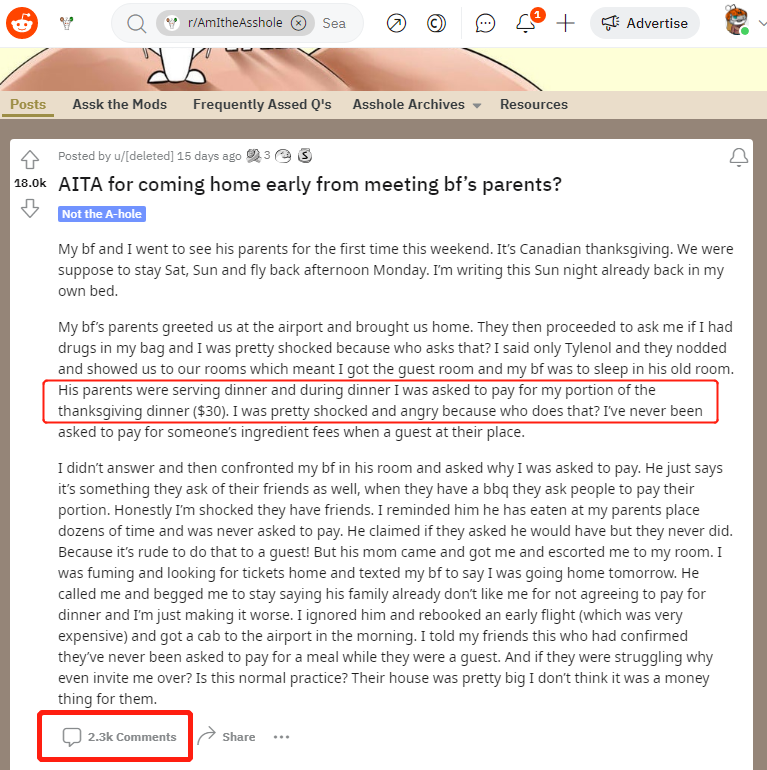 加拿大妹子去男友妈妈家吃了个香蕉和吐司!竟收到$3.23账单!网友炸锅:原地分手