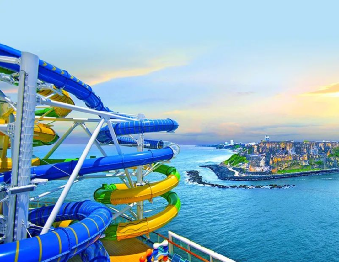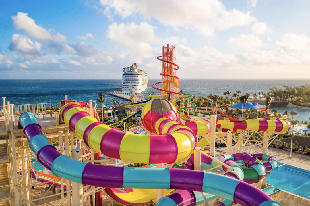 皇家加勒比著名的 “Perfect Day at CocoCay”,绝对不能错过。这里有雪白沙滩和湛蓝海水,设施豪华,漂浮的小木屋和无边泳池能让你一秒忘忧。岛上的惊险水上乐园也堪称一绝,有13条滑道。无论大人还是孩子,来到这里,就是来到了真实的童话世界,瞬间忘记一切烦恼。