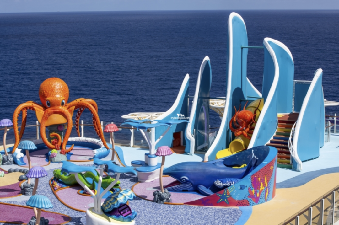 “海洋奇迹号”上全新的 Wonder Playscape 儿童区是一个大型游乐区,非常适合小朋友。这里设有适合儿童的攀岩墙、游戏、拼图、壁画等,还有最酷的户外水上游乐场,每条滑道的颜色长度都不一样。