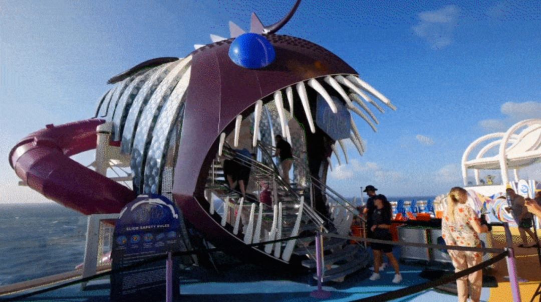 还有一个超级滑道叫“终极深渊”,入口是一张巨大的鱼嘴。从里面滑下去刚好可以到旋转木马,好玩的不得了!