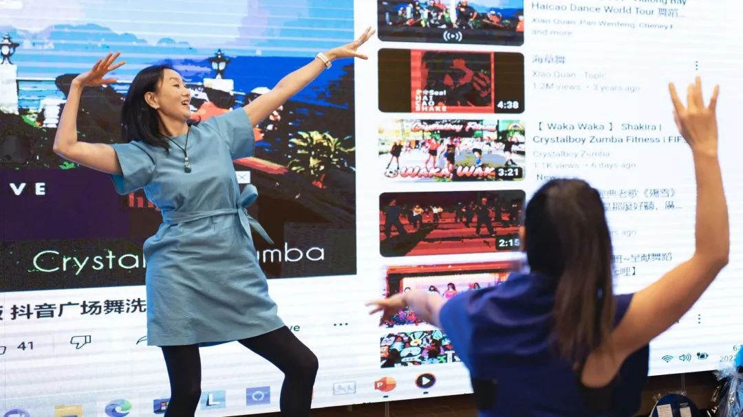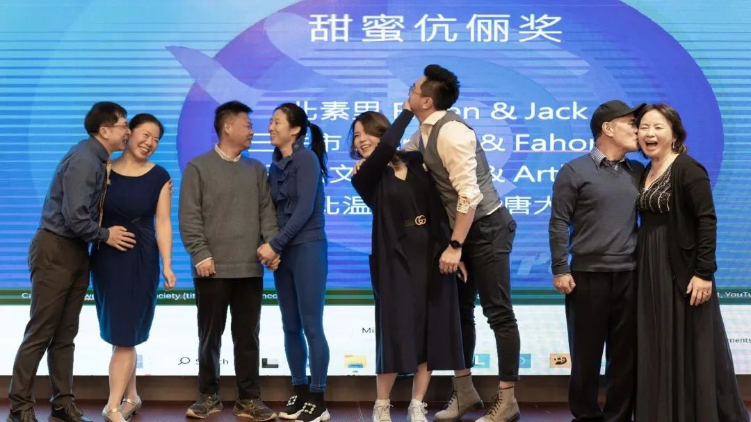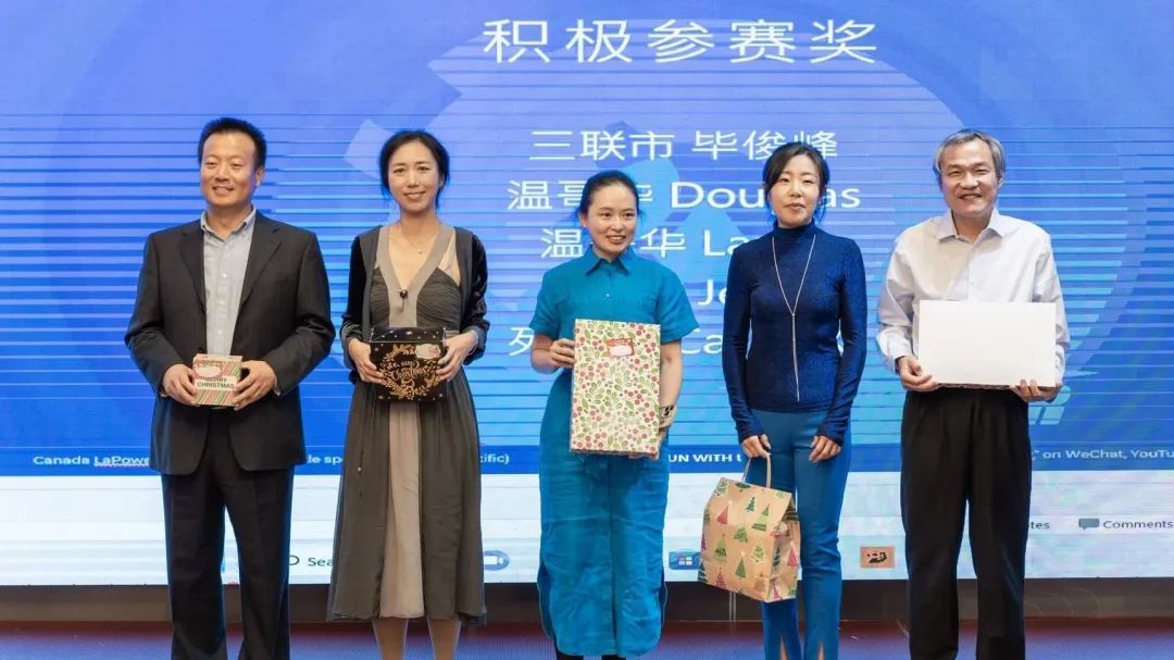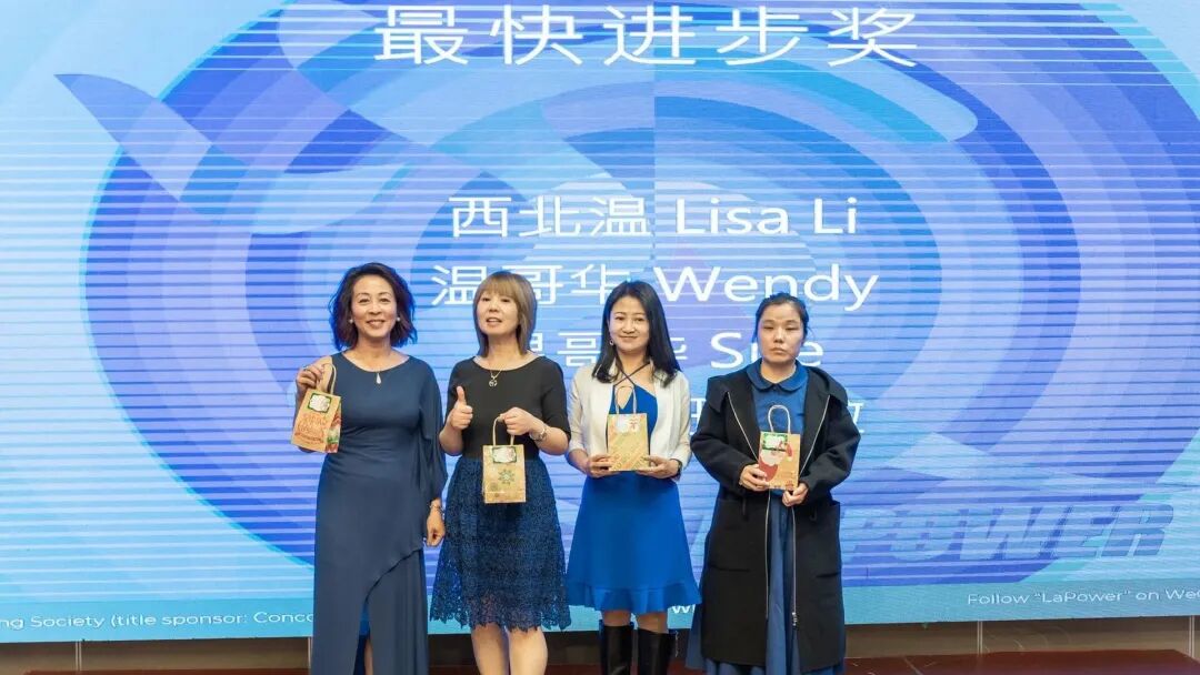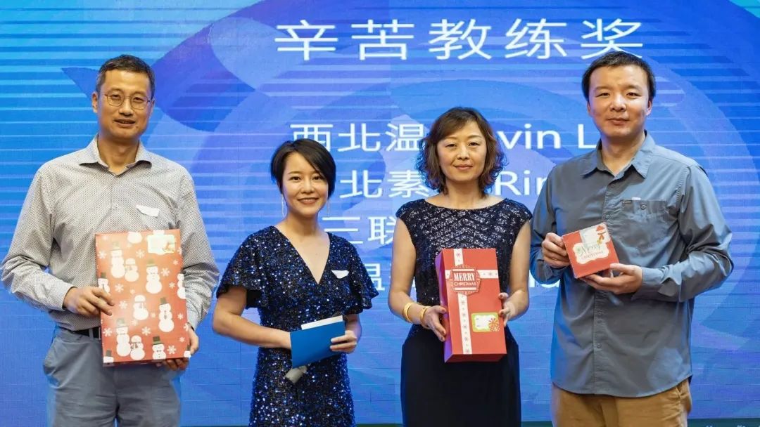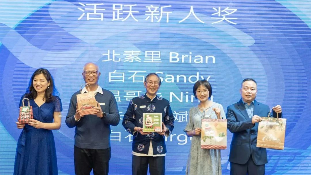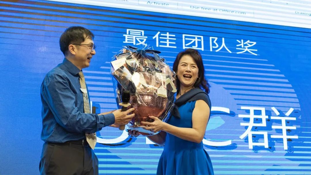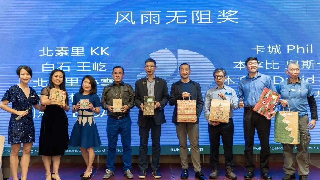 乐跑主席严怡现场揭晓和颁发最佳团队奖,UBC群主Irene上台领奖。