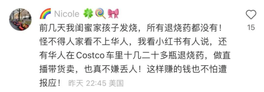 最近,国内的疫情紧张,退烧药出现紧缺,一药难求。有网友表示,一瓶在国内三甲医院售价为13.17元人民币的布洛芬混悬液(美林),竟被卖到2500元甚至3000元人民币以上的天价。不少人开始寻求海外购药,海外华人们也纷纷开始寄药回国。代购们更是早早就下场,狂囤各种退烧药、维生素C等等,网友爆料称有的代购甚至直接到Costco,上小车把泰诺全部搬空。一时间,加拿大、美国、日本、澳大利亚等地的媒体都有报道,最近很多超市和药房的非处方药都被抢购一空。目前,加拿大人正处于新冠奥密克戎(Omicron)变种、严重流感以及儿童RSV(呼吸道合胞病毒)的三重威胁之下,感冒及退烧药在卑诗乃至整个加拿大本来就已持续短缺,一件(5瓶)儿童Advil上个月在加拿大亚马逊上的售价加完税超过300加元,超过1500元人民币!在加拿大亚马逊上销售的儿童Advil和泰诺(Tylenol),几乎全都缺货!现在,这种情况已经扩展到了成人药物,只要是和感冒相关的,很多超市和药店都是货架上空空如也,统!统!没!货!不少快递公司的工作人员也表示,自从国内放宽防疫限制之后,最近寄出的很多包裹都是寄回中国的药物。明报报道,昨天(周六,17日)下午的列治文PriceSmart Foods(佳廉超市),摆放感冒及退烧药的货架几乎被清空,只剩下少量儿童止咳糖浆、感冒冲剂及成人Advil。不仅如此,货架还贴着中英文提示:“儿童止痛退烧药供应短缺,每户家庭限购一盒”,还有的标识更直言:“抱歉,我们没有任何幼儿或儿童Tylenol及Advil”。现场还不断有来碰运气寻找药物的顾客,不过他们看着空空如也的货架,也只能长叹一声无奈离去。昨天Lansdowne购物中心的一家药房仍有少量成人Tylenol供应,Advil数量相对较多。有药剂师表示,儿童药物短缺得情况已经持续了最少一个月,现成人感冒药同样开始出现短缺。药剂师还透露,确实有不少顾客表示要买感冒及退烧药寄回中国,或趁回国时顺便带过去。本那比Shoppers Drug Mart提醒顾客,限购一盒Tylenol及Advil。不仅是加拿大,最近美国很多超市和药房也遭遇了不同程度的“退烧、感冒药荒”,很多非处方药被抢购一空,线上的药物销售渠道也面临严重缺货。不少网友直指,这其中很大一部分原因是因为代购为牟利大批量采买感冒药、止疼药和退烧药,这种行为甚至导致了真正需要用药的病人根本买不到药。有网友在小红书上爆料称,代购将Costco的泰诺成箱成箱搬走:“今天去Costco碰到了一个代购,竟然推着仓库里专用的大型推车扫药。现在是非常时期,美国病患也很多,寄一点回中国救急可以理解,但这样成箱买,让这里生病的人反而买不到药,真的很过分。有时他们甚至边买边直播!”另一位网友也目睹了类似的一幕,一个代购用大型推车抢药,潇洒付账,货架上仅剩的几箱也被另一个穿白衣服的人全部搬走了。在一些社交平台上,现在还有人表示,自己可以代购药品。澳大利亚的一位网友也表示,以前打折都没人药的药现在竟然开始限购了。还有一位北京妈妈说,她曾经想让澳大利亚的朋友给她的小儿子买点退烧药,可朋友告诉她,墨尔本她家附近药店的所有发烧药都卖光了,因为有太多的中国人在买。法国的华人网友也表示,当地也开始限购了。日媒也爆料称,中国代购正在疯狂地大量购入日本“大正感冒颗粒”,导致这种感冒药在日本药妆店脱销或限购,日本当地人也是一脸懵…不得不说,代购这种大规模抢空的行为实在让人无语,有网友说:“前几天我闺蜜家孩子发烧,所有退烧药都没有…还有华人做直播带货卖,也真不嫌丢人,这样赚的钱也不怕遭报应。”“这些代购都做个人吧,我已经三个星期了买不到退烧药感冒药了,真的天天提心吊胆,真怕哪一天就在学校被感染了,然后没药。”另外需要提醒大家的是,疫情期间快递到中国的时间也不确定,而如果是装有感冒药的包裹被抽查,甚至有可能被中国海关没收。世界日报报道,在美国纽约法拉盛经营近10年的37大道快递业者康先生表示,近期邮寄回中国的泰诺等退烧药与止痛药激增;但他强调,邮寄回中国的快递时间较长,目前无法确定抵达时间,如果装有感冒药等非处方药的包裹被抽查,恐无法通过清关。明报的报道也称,加拿大邮政公司(Canada Post)工作人员也表示,最近收到了很多寄感冒药到中国的查询,“是可以寄,但实际上并不确定中国那边会不会没收,有听说过包裹到海关就不见了,而且疫情后跨国包裹的邮寄时间也不稳定,有时寄过去甚至可能需要一、两个月的时间,费用也不便宜。”话说,对眼下这种疯抢药品的行为,不知大家怎么看?