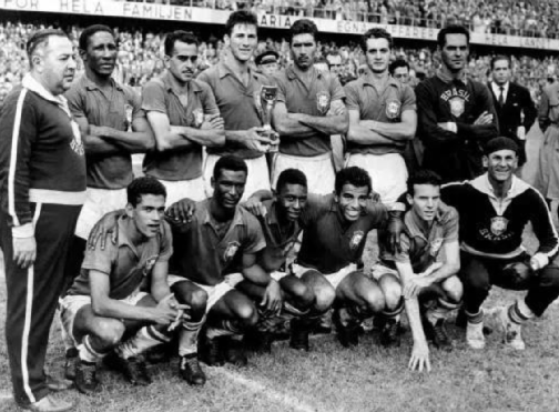 1958年,18岁的贝利代表巴西国家队征战世界杯。在世界杯的比赛中,他上演了帽子戏法、梅开二度,带领巴西队捧起了大力神杯,球王的名号一炮打响。
