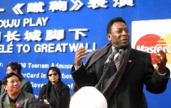 2002年日韩世界杯前夕,贝利抵达北京参观了八达岭长城,甚至体验了一把中国传统蹴鞠的魅力。
