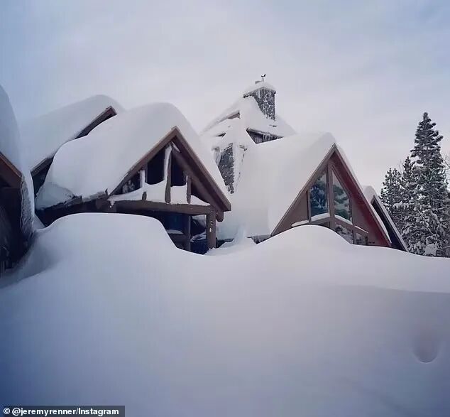 这个寒冬,太浩湖附近每天的降雪量已超过1.2米,大半天不铲雪,整个房屋就会被掩埋。雷纳曾多次在社交媒体晒出过自家的雪景。
