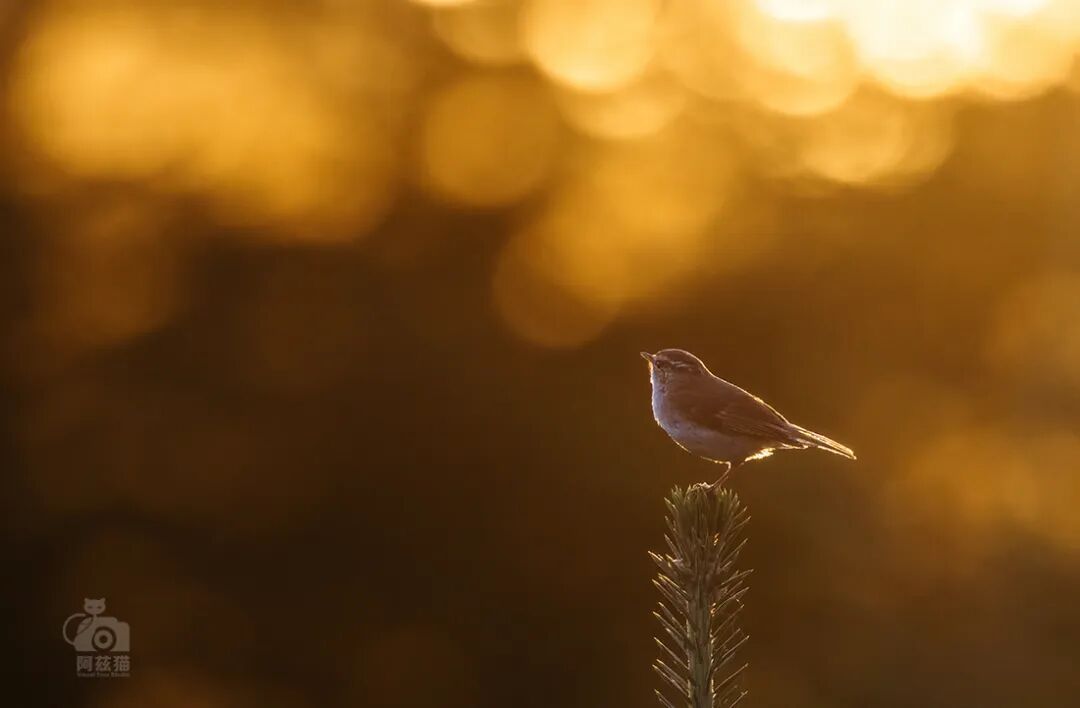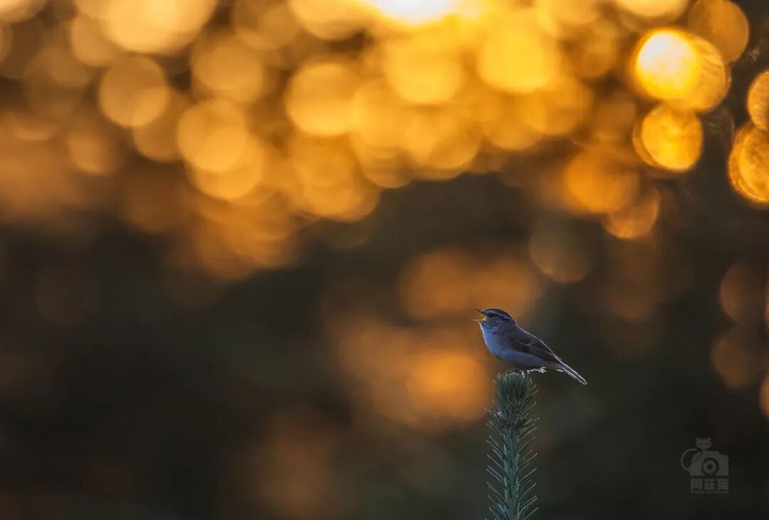 没有什么方式比通过鸣唱和鸣叫更适合分辨各种柳莺,这类外貌特征不明显的鸟类了。当我在北京灵山第一次听到云南柳莺的叫声,印象极为深刻,那是一种重复频率极高,单调又响亮的声音,类似汽车报警器。灵山的云南柳莺很常见,一天下午,我又听到那标志性的报警声,下车在路边寻找,很快看到逆光下矗立在松枝上的身影。太阳即将落山,光线透过松枝,形成金黄色的光斑,梦幻光影中,那一刻,整个世界就只剩下一只不知疲倦歌唱的小小柳莺。