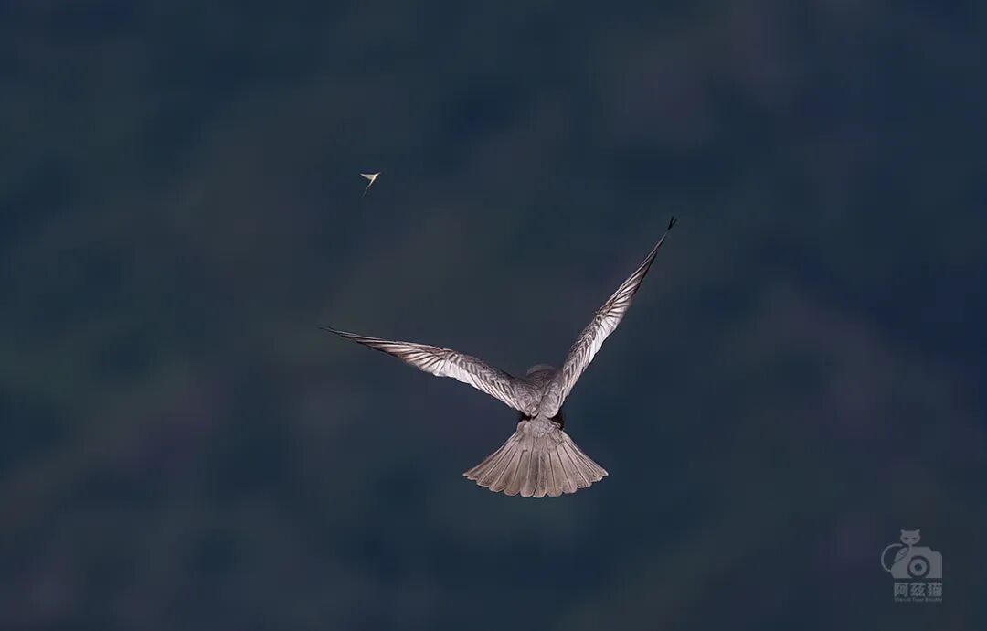 红脚隼是北京的夏候鸟,最近几年郊外湿地公园常见,这个夏天我就看见了N多次。这种小型猛禽喜欢在开阔的林缘、田野、草原、湿地活动,主要以昆虫为食,空中捕食能力超强,抓住直接就在空中吃掉了,边飞边吃,一点不耽误。红脚隼的雌雄羽色差异较大,感觉雌鸟更漂亮些。清晨,密云的一条小河边,天空中活跃着五、六只红脚隼,它们觅食的对象却让我大跌眼镜。虽然以昆虫为食,但怎么也得是蜻蜓这样大小的吧,结果竟然是蜉蝣,一种幼体水生,须羽化蜕皮才能飞行,寿命极短的昆虫,只活几小时至数天,有“朝生暮死”之说。面对仅能塞牙缝的食物,这只红脚隼雄鸟却十分卖力。深色背景下,它的羽毛呈现金属质感,蜉蝣清晰可见,两个V字形让画面简洁又充满动感。顺便说下,不是所有的片子都需要主角“露脸”,有时候无言甚于有声。