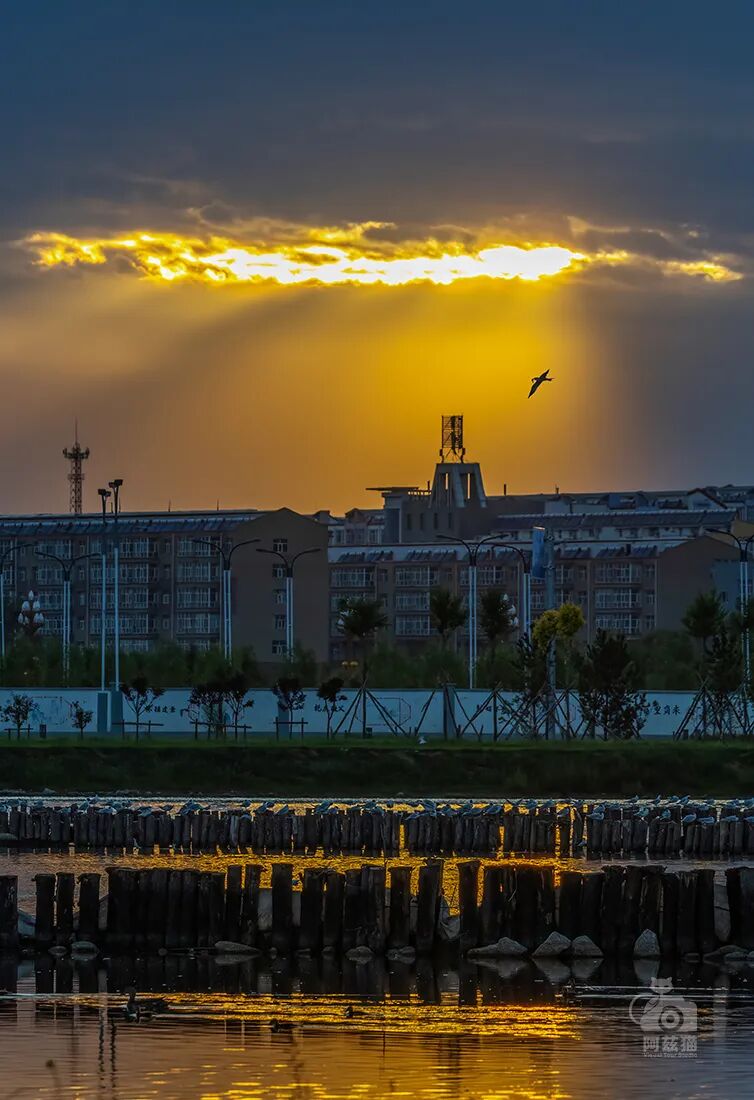 当丁达尔光出现的时候,不要犹豫。傍晚,我守候在康巴诺尔湿地旁,正在专注拍摄逆光中的遗鸥。这时,远处原本乌云密布的天空突然被一束光撕开,落日余晖瞬间照亮了水面柱子上密密麻麻的遗鸥,一只遗鸥叼着鱼从光线中飞过。画面中,可以看到崭新的公寓与湿地近在咫尺,配合戏剧性的光线,生动诠释了人与自然的和谐共生。