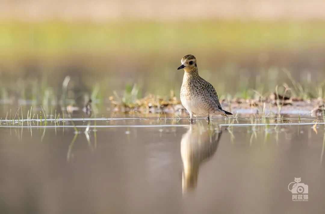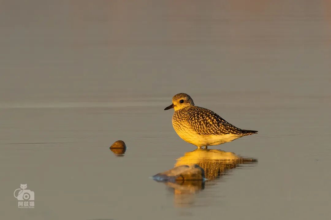 灰斑鸻在南方是菜鸟,但在京城却不多见,迁徙路过停留两三天便飞走。清晨,天刚蒙蒙亮,我守候在官厅水库边,待光线慢慢洒在水中的一只灰斑鸻身上,笼罩上一层淡淡的金色。它的站姿没有金斑鸻那般挺拔,上身体羽呈银灰色。顺便说下,这两种鸟的非繁殖羽与繁殖羽都有着天壤之别。