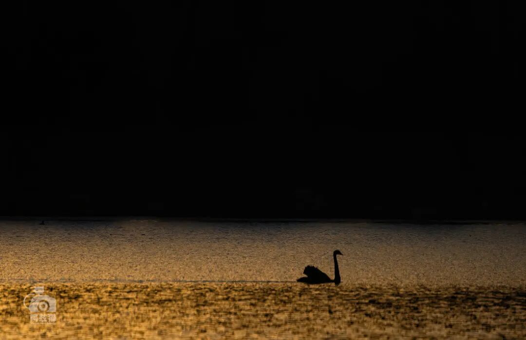 逆光再减曝便是剪影效果,尤其是深黑的鸟类,比如黑天鹅。颐和园的团城湖向来是水鸟的乐园。在最后一缕光线即将消失前,点测光对准洒满金光的水面最亮处曝光,将主体原有的细节、层次、色彩,包括岸边的景物统统隐藏在黑暗中,化繁为简,只留下一个孤独的黑天鹅轮廓,即将隐入沉寂,意境大于具像,令人浮想联翩。