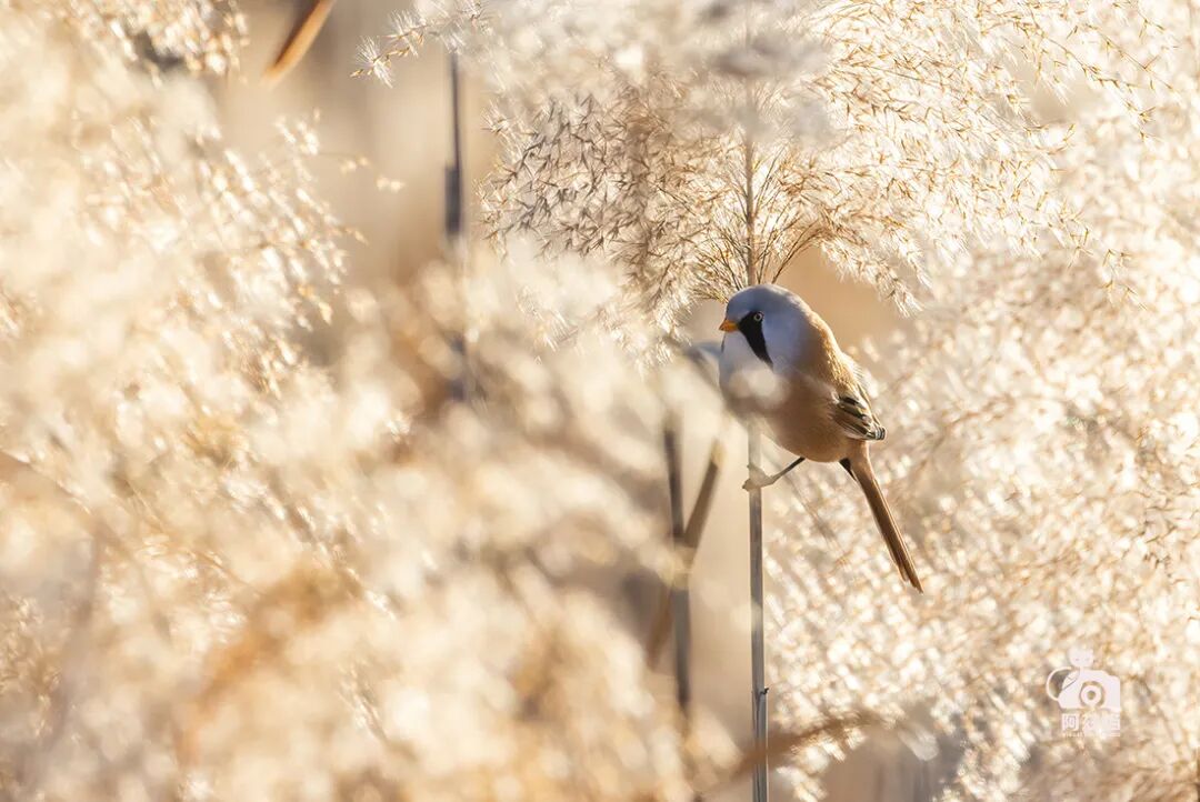 文须雀是深受鸟人喜欢的北方冬候鸟,当它们成群出现意味着冬天即将开始。深秋时节,沙河北岸的芦苇丛中活跃着一群文须雀,足足四、五十只之多。每天早上七八点,它们都会飞到芦苇上取食隐藏在芦花中的芦苇种子。只要风力不大,这些小家伙就会“悉悉索索”窜到顶端的芦苇花上,周围随即响起一片快门声。本不喜欢凑热闹,无奈我也是文须雀的粉丝,年初仅拍到雪地版的,芦苇花版的还没有搞定。文须雀活跃的芦苇丛有两片,我和同伴毫不犹豫选择了逆光的那片,一来逆光下的芦苇花很梦幻,二来机位更高,可以避免千篇一律的天空背景。果然,当文须雀现身时,一切如预先所料,完美的光线和鸟儿。