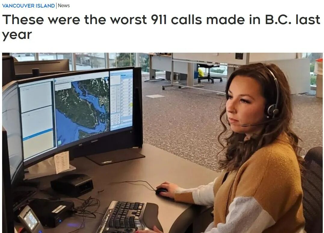 据CTV报道,BC省 911 电话紧急调度中心 E-Comm 发布了去年 911 最无聊也最不必要的 10 大911 报案理由。
