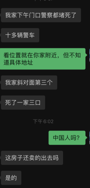 有邻居爆料:确定死者三人都是华人,一家三口都负责教课,爸爸教数学,妈妈教法语,儿子教英文。父母都是从北大毕业的,疑似是儿子杀了父母后再自杀。