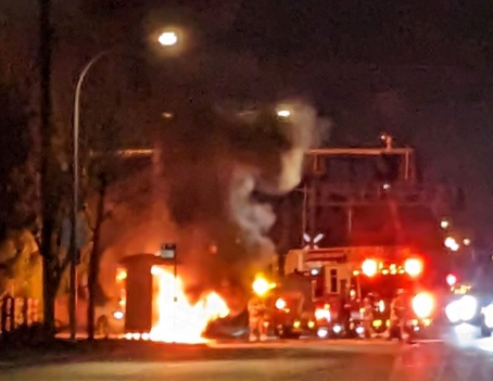 里士满消防救援队 (RFR) 的一位发言人称,火灾发生于1月8日晚,疑似最先的着火点是公交站旁的垃圾桶,火势加剧后点燃了旁边的公交车站。