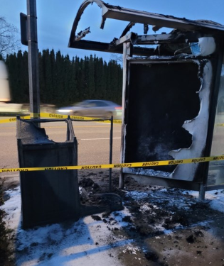 1月9日早晨,照常上班的列治文居民忽然发现,自己平常乘坐的公交站被烧了!站台已经完全焦黑,现场一片狼藉。