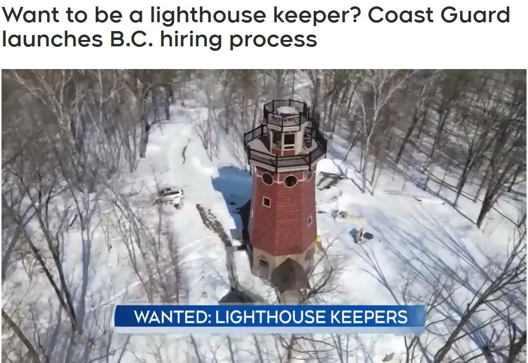 最近加拿大海岸防卫队( Canadian Coast Guard)最近在BC省招聘灯塔管理员。
