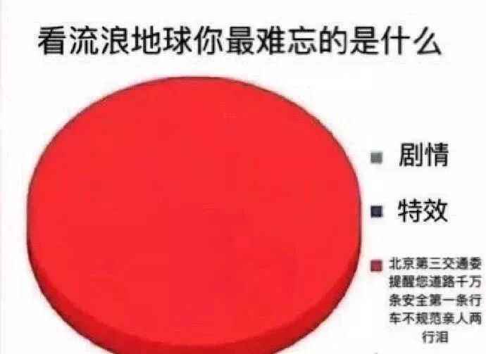 依稀记得2019年《流浪地球》上映时,一举获得46.55亿元的最高票房,同样火爆的,还有这个“道路千万条,安全第一条”的梗: