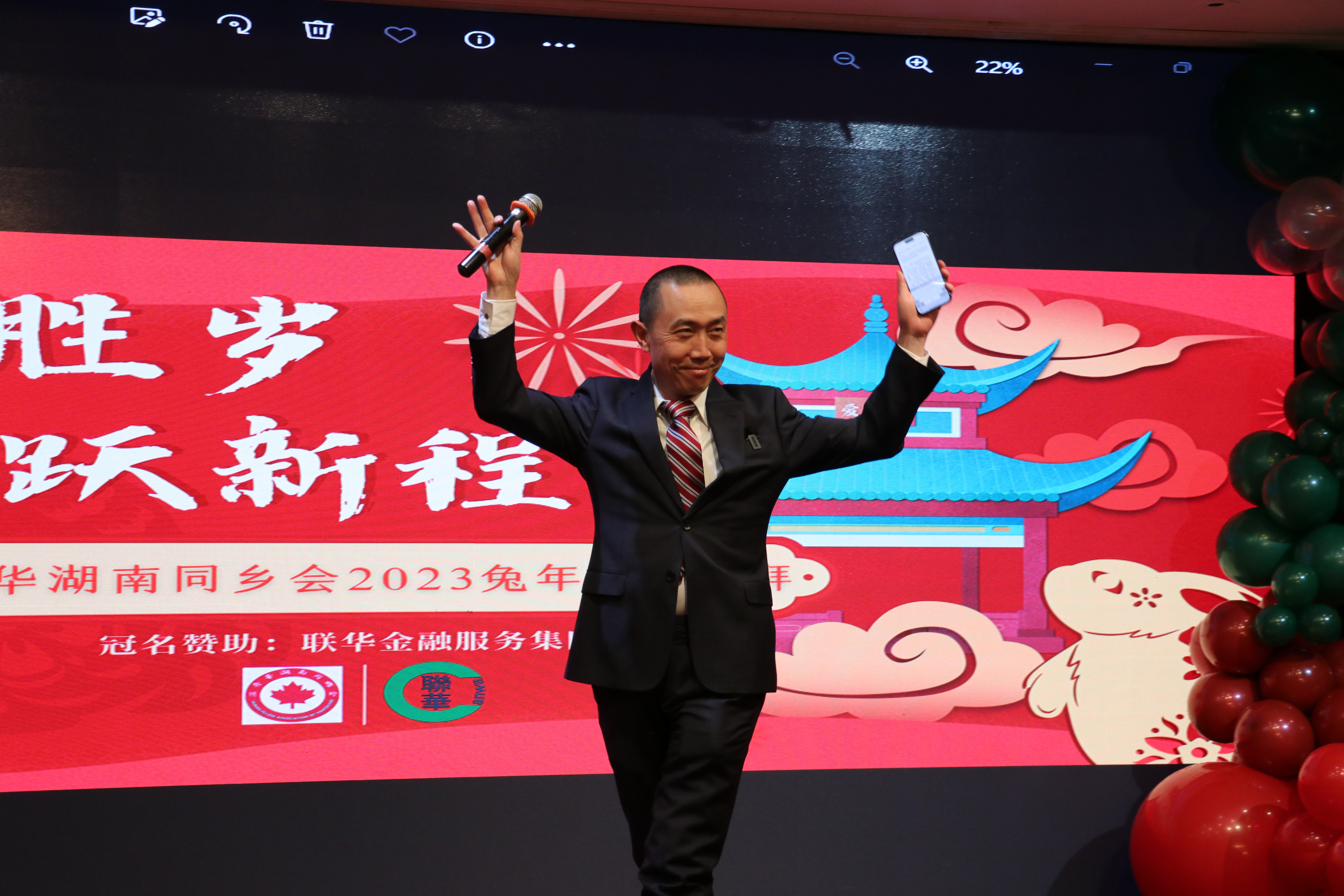 冠名赞助联华金融服务集团的负责人冯银锁致词时以自己名字玩了个谐音梗──“赢家选择,锁住财富”做开头。他说,过去在湖南长沙、衡阳等地赞助的残疾和孤儿院已超过30万元(加币,下同),“湖南人直率、坦诚、爱憎分明、吃苦耐劳、自信、倔强,有时也有点蛮横,我喜欢湖南人湖南菜,也喜欢湖南老乡。”