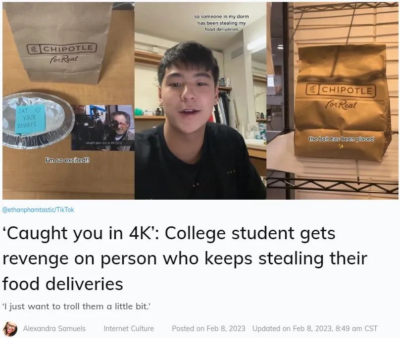 “装满垃圾”!亚裔小哥奇招整蛊”偷外卖贼”火遍全网!网友评论亮瞎!