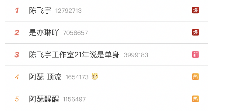 此消息一出,热搜上一片飘红,前十个热搜里八个都和陈飞宇相关。