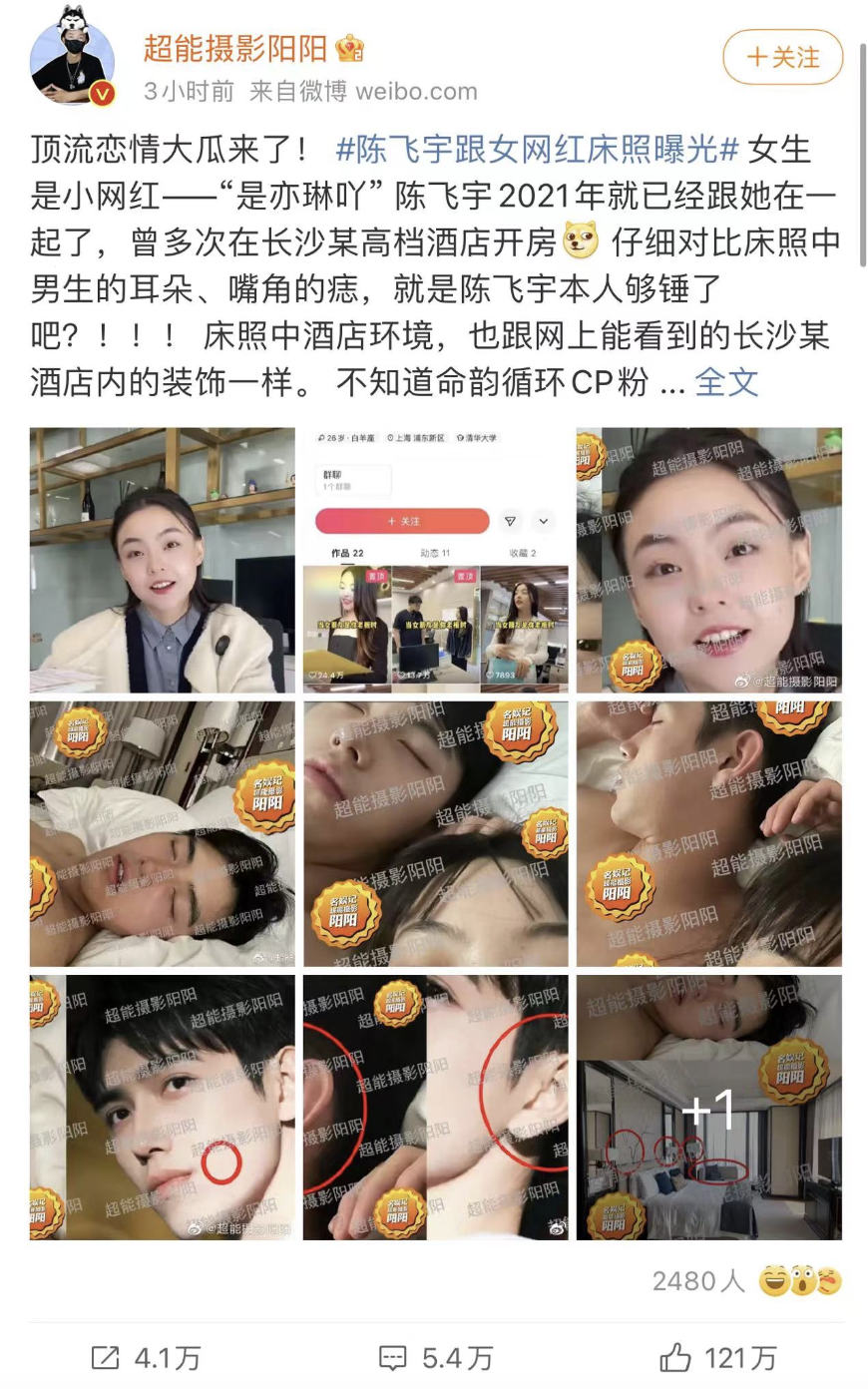 今天,有人曝光了疑似#陈飞宇与女网红床照#