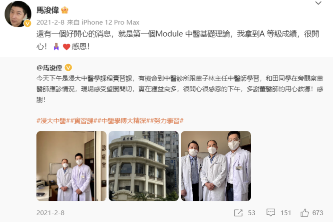 他自修《黄帝内经》,每天早上起床都会看书一小时,最后如愿收到了浸会大学中医药学院的入学通知。