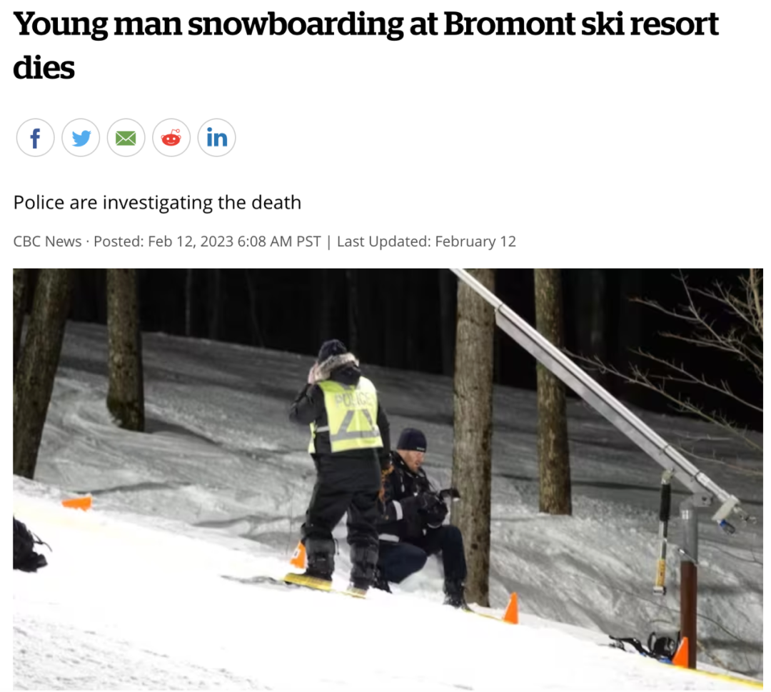 “晚上 7 点左右,巡逻人员被叫到滑雪场帮忙。在我们的巡逻员执行了必要的急救流程后,这名年轻人被送上救护车。我们的团队目前正专注于了解事件的相关情况,Bromont 警方将展开调查。这一悲惨事件令人非常沮丧,我们与遇难者的家人和朋友同在。”