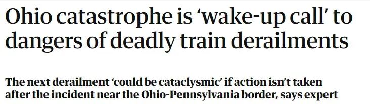 正如《卫报》总结的那样:俄亥俄州的灾难是致命列车脱轨危险的“警钟”。