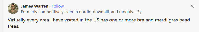 为什么美国滑雪场的树上总挂满了胸罩?2023-02-16 |作者:beebee | 来源:beebee星球户外分享:#滑雪#滑雪场#胸罩在美国滑雪场坐缆车的时候多留意脚下,总会看见一棵被扔满胸罩和丁字裤的树,如同发生过无数次角斗的激烈战场。 这一独特的景观让无数滑雪新手挠头苦想由来,不禁按下脑内幻想的开关。 如果运气好,你没准还能收到一条热乎的。 在美利坚的滑雪场,目击这种上贡现场不是什么困难的事。 当前方的那位老实女孩冷不丁地从口袋掏出胸罩或丁字裤,朝着旁边的树弹射出去,驾轻就熟地挂在某个妥帖的位置,这时你就应该知道,这可能是某种礼仪。 讲究的雪友不会随意将胸罩投向任意一棵树,而是耐心等待缆车经过命定的那一棵。 这棵树没有固定的品种,但你看一眼就知道是它。在你来之前,它已经遭受各式女性内衣裤的狂轰乱炸,你经过之后,这项神秘仪式也将继续。 根据树上装饰物的主要成分,顾名思义,你可以叫它乳树,或者内裤树。 为什么在许多滑雪胜地,滑雪缆车附近的一棵树上挂满了内衣? 或许因为使用过的内裤面料总比胸罩更埋汰,或者环保人士的介入,胸罩树逐渐顶替最开始的内裤树,成为最主流的叫法。 来自爱达荷州的树艺师比尔·乔西呼吁,别扔丁字裤在树上,因为套不好可能会让树经历缓慢的环切。以及加重载雪量,造成枝干损坏。 作为美国滑雪场的重要地标,按规矩来说场子里一般只有一棵胸罩树。 由于实际投掷中可能出现方向偏差,或者有人刻意另起山头,不断吸引后来者的进贡,出现多棵也是令人喜闻乐见的好事。 这些胸罩树通常在以缆车座椅为起点、人力所能及的投掷距离内随机刷新。 胸罩树的确切起源存在不少争议。 主流认为,它大约起始于1950年代,迅速席卷美国几乎所有的滑雪场,从加利福尼亚到缅因州,成为资深雪友之间约定熟成的传统项目。 这股风潮同时吹到加拿大,在艾伯塔省、不列颠哥伦比亚省和安大略省等地引进,成为整个北美地区滑雪场的一道奇景。 诺基山滑雪场直接立上“请投喂胸罩树”的标语牌,将心照不宣的扔内衣行为过了明路,点化更多信徒。 请投喂胸罩树 就连缆车扶手上也写着:请投喂胸罩树 据《粉雪杂志》的深度调查报道,这一传统始于美国1970年代初期的阿斯彭滑雪场。比主流溯源的时间晚了20年。 由于女性和男性一起被雇用作为滑雪巡逻员,有巡逻员对此感到不满,于是将一件女性内衣扔在树上。 此时,美国已经进入“性革命”,致力于解放人们基于性别、性倾向、性关系以及性行为上所受到的所有社会压迫。 国际滑雪历史协会主席赛斯·马西亚表示,如今滑雪是一项更适合家庭的运动,而当年美国婴儿潮一代遇上性革命初期,酒吧里的搭讪文化成为滑雪周末的固定戏码。 于是,该抗议行为反而演化为反叛的直接证据,像昨晚征服的战利品一样挂在树上,汇成战绩排行榜。 还有人说,内衣需要在对方不知情的情况下偷走。 最好是带蕾丝的,然后才能捐献给这棵宝贝树。 胸罩树还有一种诞生说法,是在1980年代中期,同样也是在阿斯彭滑雪场。 老巡逻员说,当时有人向树上扔内衣,上面写着滑雪界一位有争议人物的名字。 结果这一幽默噱头引出大批追随者,鼎盛时期至少能数出五十多件胸罩挤在单薄的树枝上。 后来,这棵胸罩树变成叛逆精神的象征。 官方威胁要移走这棵树,并禁止人们往树上扔胸罩,但只会导致扔胸罩行动增加。 正如1997年,韦尔滑雪场的第一棵胸罩树被砍倒。 滑雪者不会就此收手,而是选择另一颗树来延续传统。 更多的滑雪场打不过就加入,将其打造成美国滑雪文化的一部分,象征着自由、不从众,还带着派对的热烈氛围。 事实上,我在美国去的每个滑雪场都有一棵或多棵胸罩树 当然,不同的滑雪场有不同的说辞,有的说是献给雪神的祭品,有的说是雪季封板的仪式。 在滑雪场有30年工龄的约翰·里昂表示,这相当于滑雪场上的狂欢节,所以滑雪场还会用狂欢节彩珠来装饰胸罩树。 也有网友透露陈年往事,在雪季快结束的时候,有的滑雪场会特别允许裸体滑雪人士放纵一把,这些人会把内衣裤扔到树上,光膀子或者全裸滑下来。 不管你之前是否听过这些起源,在乘坐缆车时,大多会情不自禁盯着这些树上的胸罩,脸上露出意味深长的微笑。 《滑雪》网站称,往树上扔的bra代表你征服雪场的战利品,而不是某个特定的人。 因此你可以扔别人的bra,也可以扔自己的。 当地的私人滑雪俱乐部会鼓励你,将自己最不喜欢的bra装进口袋,废物利用,转化为滑雪场bra树的有生力量。 也有人会特地从网上购买,实现专罩专用。 对此,滑雪杂志作者Sierra Shafer呼吁,传统也需要与时俱进,为了性别平等,期待在滑雪场更多的树杈上看到男士内裤。 在这一点上,我愿意从自己做起。 声明:转载此文是出于传递更多信息之目的,并非代表本站支持其观点。若有文字、图片及视频等素材来源标注错误或侵犯了您的合法权益,请作者持权属证明与本网联系,我们将及时更正、删除,谢谢。阅读 未经允许不得转载:加拿大乐活网 »为什么美国滑雪场的树上总挂满了胸罩?分享: