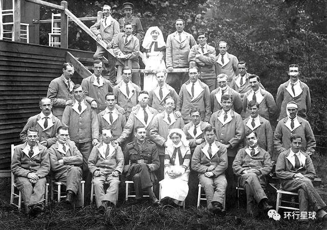一排左四的哈罗德医生与一战伤残士兵的合影 图:网络