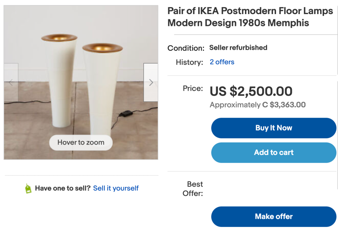 这些落地灯是目前最受欢迎的宜家古董之一,价格从一个$500到一对$3,000不等。这些落地灯在1980年代由宜家出售,现在可能不会再在宜家看到这些落地灯了,如果有幸能找到这款落地灯,可发了。