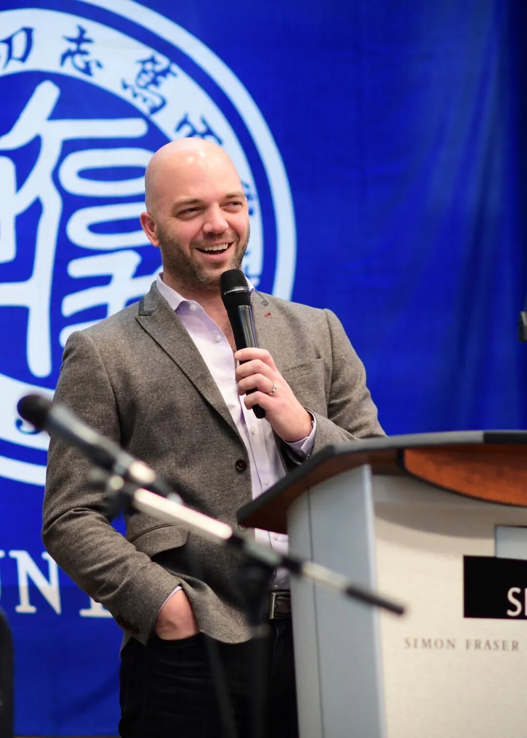 首先,如各位所知,今天的活动是在原住民的未割让土地上举办的。我非常感谢他们的慷慨与无私,他们的爱和关怀使我们得以在这片土地上工作和生活。这不是空洞的一句感谢,因为我认为这对我们今天在座每一位都非常重要。在我认识的所有人中,或为原住民,或为移民,而今天在座的我们都是这片土地上的移民。我相信稍后我们的讨论可能会涉及正义和反歧视等主题,这就是为什么我认为保持这种平等和畅通的对话很重要。我想说的第二件事是,我今天穿的这么休闲是有意而为之的,而且我身上的所有品牌都来自温哥华,因为我确相信我们对温哥华的本地品牌和企业的支持是非常重要的。