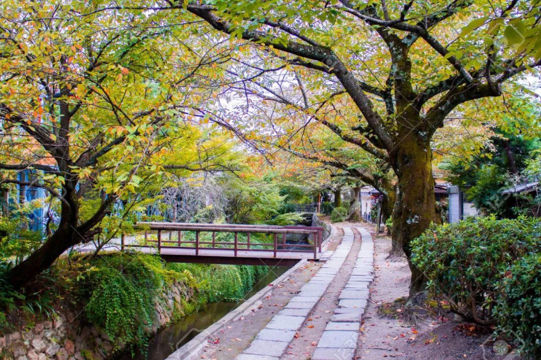「哲学之道」四季景色各异,美丽清幽。石阶顺小溪前进,绿树枫叶垂降其上,聆听潺潺溪水,欣赏落英缤纷,足以沉静身心。