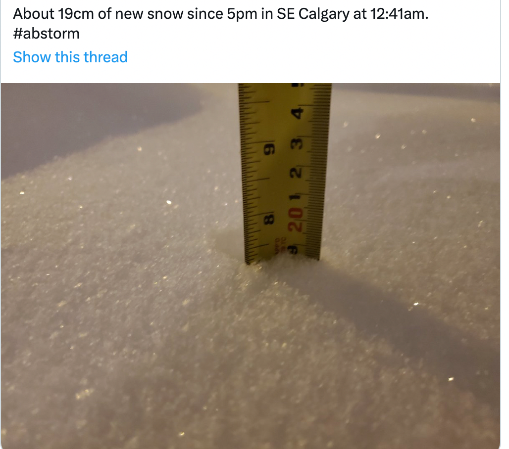 大雪破了百年记录!一觉醒来卡城又被埋了,市民铲雪都快累吐了。。。2023-02-23 |作者:综合编辑 | 来源:卡尔加里生活加拿大Loading...分享:#卡城#暴雪虽然早早就收到了降温大雪天气警报,可是周二一大早醒来,卡城小伙伴们还是被眼前的大雪给惊呆了! 又是全城一片白茫茫天苍苍,大暴雪又把卡城给埋啦! 感觉好久都没下这么大的雪了,市民们起床后不由得有点小激动,纷纷拿出了尺子,量一下雪到底有多深~~ 哎哟,我家有20厘米诶: 我家也有20cm! 20厘米算啥,我家24cm! 24厘米?我家后院都30cm啦~~ 还有更高深的小伙伴,要啥尺子呀,直接搬出狗子,差不多是二分之一个哈士奇的雪就是了! 卡城西北边的雪尤其大,部分社区甚至有40厘米深! 根据skytracker的统计,周二卡城下雪最多的地方是西北和东南远郊社区,西北royal oak社区的雪达到了38厘米,而东南Mckenzie lake社区的降雪也达到了36厘米。 而根据Calgary weather record的统计,从周一晚上到周二傍晚,不到24小时里卡尔加里疯狂撒下30~40厘米大雪,破了自1918年以来的该日最高降雪记录! 不过雪就算再大,还是要带狗子出去浪一圈滴: 卡城人天性乐观,这么厚的降雪,终于又可以玩“卡城独一份”的雪泳了哈哈: 浪完后,接下来就要考虑更实际的事情了,该去铲雪大干一场啦~~ 积雪太厚了,铲雪不到5分钟就累出一身汗: 全家出动把家门前道路上的雪全铲干净,累到上气不接下气眼冒金星: 家里有snow blower的,这回就神气了: 好不容易铲完了雪,还得去把车挖出来: 这种大暴雪天里,卡城人宁愿就“卡在家里”了,但对于要上班或者要送娃上学的小伙伴们来说,还得赌命开车出行。 开车上了路,路上也是各种心惊胆颤,好多车开到一半卡住了: 不少公交车开到半路趴窝了,只能请拖车来拖: 道路堵疯了: Country Hills Blvd : 条条大路都变成了停车场: 走一路能时不时看见不少推车大力士: 铲雪遛狗挖车推车,这么一天折腾下来,快累散架了: 不过总算是,周二这场大暴雪下完后,大伙儿就能喘口气歇会啦~~ 接下来几天,降雪会减少,但极寒大降温也会随之而来,周四晚上周五凌晨卡城最低气温更是要降到-35摄氏度,预计体感温度将降至-40度: 而紧接着到了本周日,天气预报称卡城还将有更大一波降雪袭来,看来最近这一两周真的要把两个月的雪都下了才算完~~ 总之,天寒地冻大暴雪,小伙伴们一定要注意保暖呀,铲雪也要注意间歇休息下,扛过这一波后,离春天就更近一步啦! 声明:转载此文是出于传递更多信息之目的,并非代表本站支持其观点。若有文字、图片及视频等素材来源标注错误或侵犯了您的合法权益,请作者持权属证明与本网联系,我们将及时更正、删除,谢谢。阅读 未经允许不得转载:加拿大乐活网 »大雪破了百年记录!一觉醒来卡城又被埋了,市民铲雪都快累吐了。。。分享: