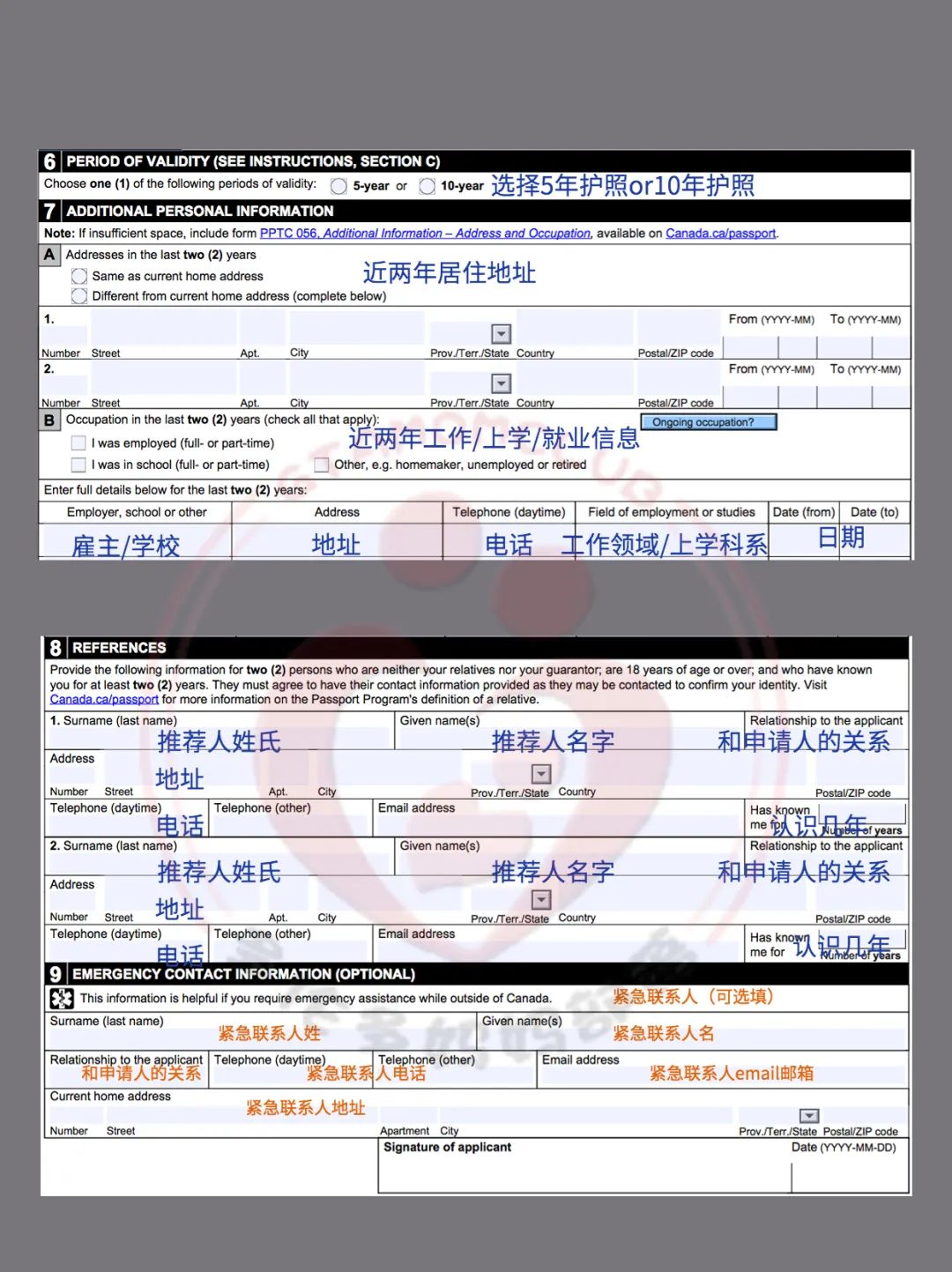2名推荐人(References):至少认识你2年以上的18岁以上成人。(护照中心会随机打电话去确认,建议提前打招呼)不可和担保人重复,不可填写家人。