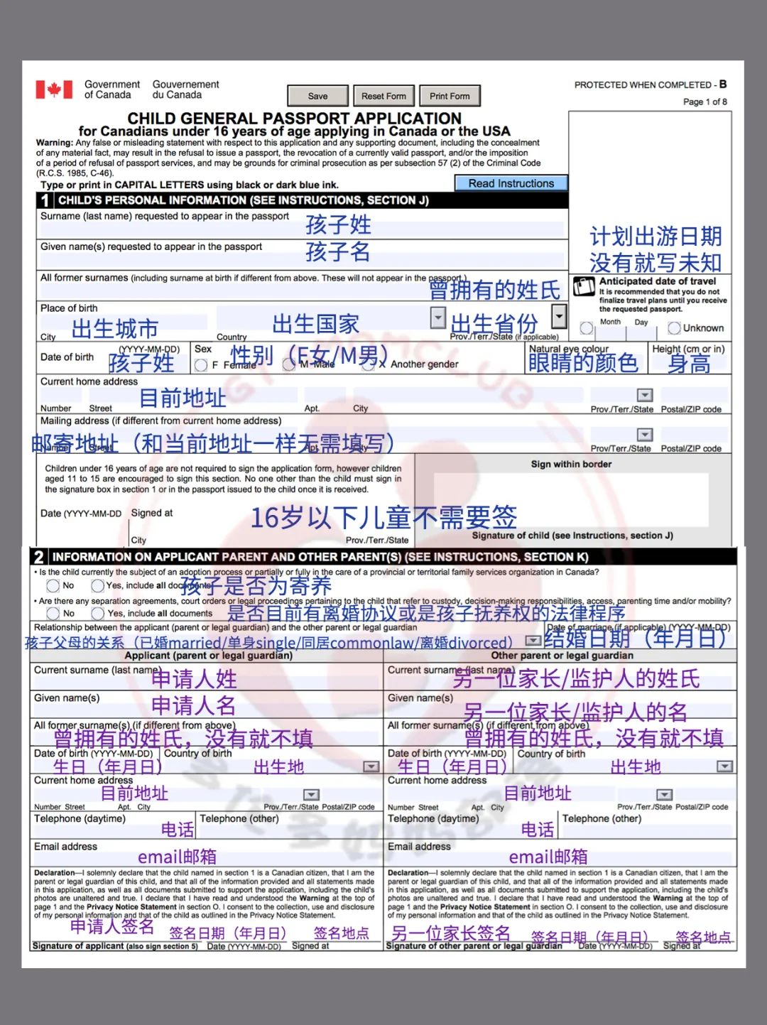 Guarantor担保人:持有加拿大护照,认识你2年以上并且认识你的孩子的人可以作为申请担保人。如果父母是持加拿大护照的公民,父母可以作为Guarantor。
