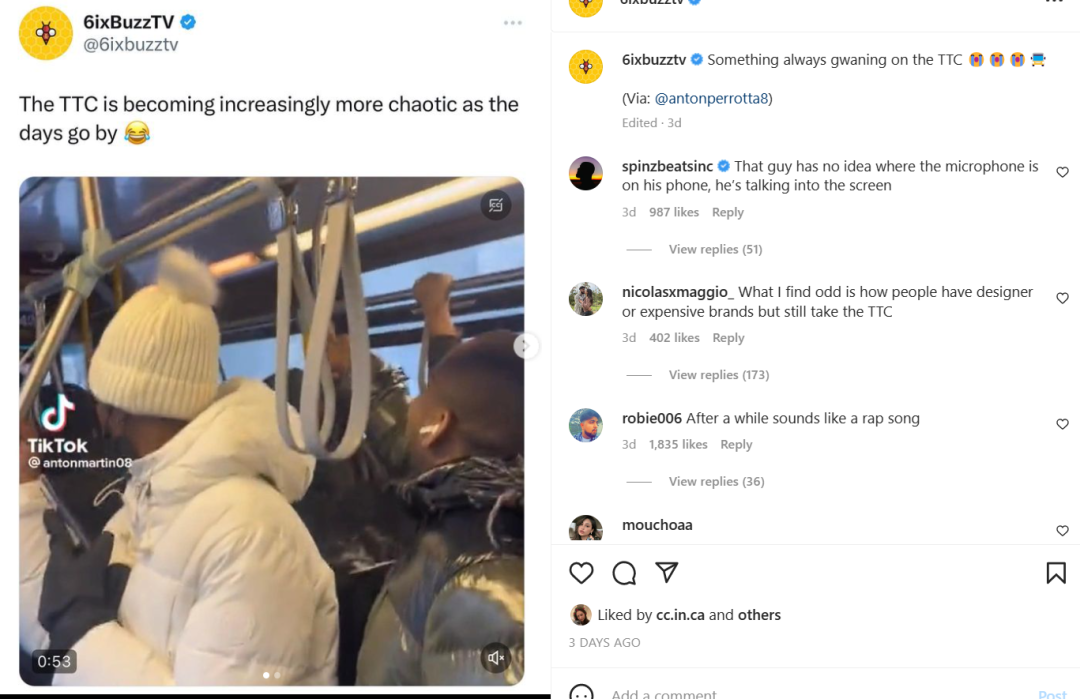 无独有偶,近日一则发布在社交媒体上的视频引发了大家的关注。根据发布者的注释,这是一段他在多伦多公交车上录制的视频。