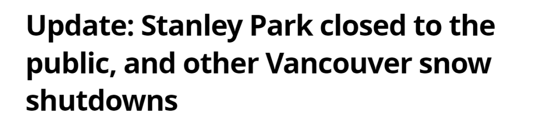 至于公园等娱乐设施,更是想都不要想,一律关停。斯坦利公园关停一天,温哥华的水族馆也歇业了。