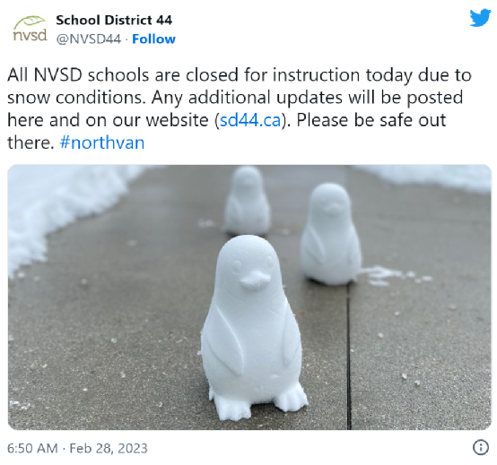 北温哥华也紧紧跟上:风雪实在太大了,今天我们就不上课了。